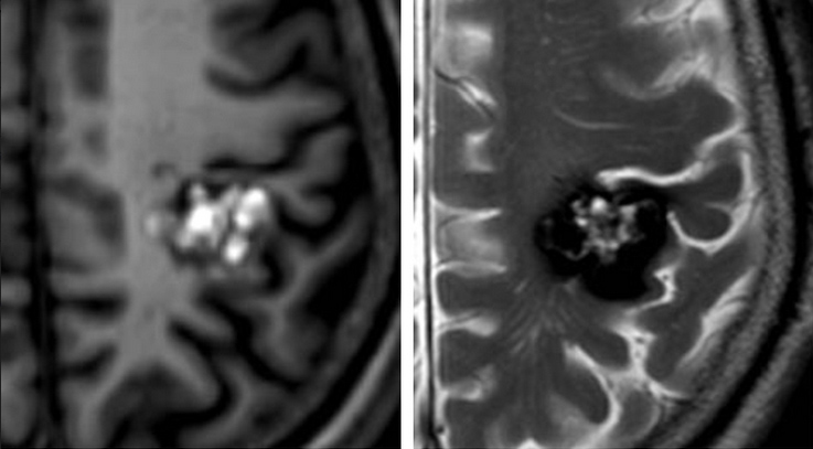 • MRI with Susceptibility-Weighted Imaging (SWI): The diagnostic standard for cavernous malformations. The characteristic “popcorn” appearance with a dark hemosiderin ring on MRI is essentially diagnostic.